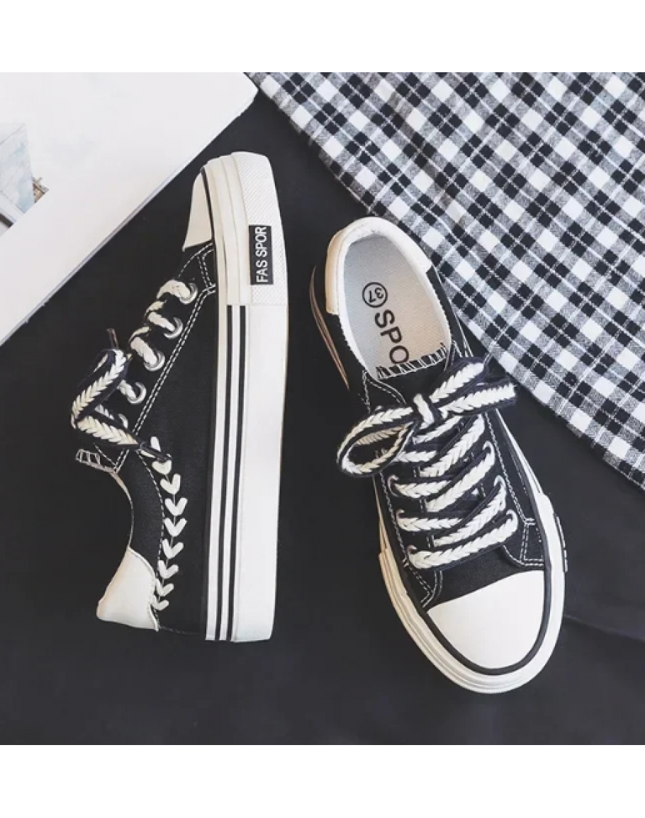 Women Outdoor Trainers Platform Canvas Shoes Height Increasing Chunky Sneakers
